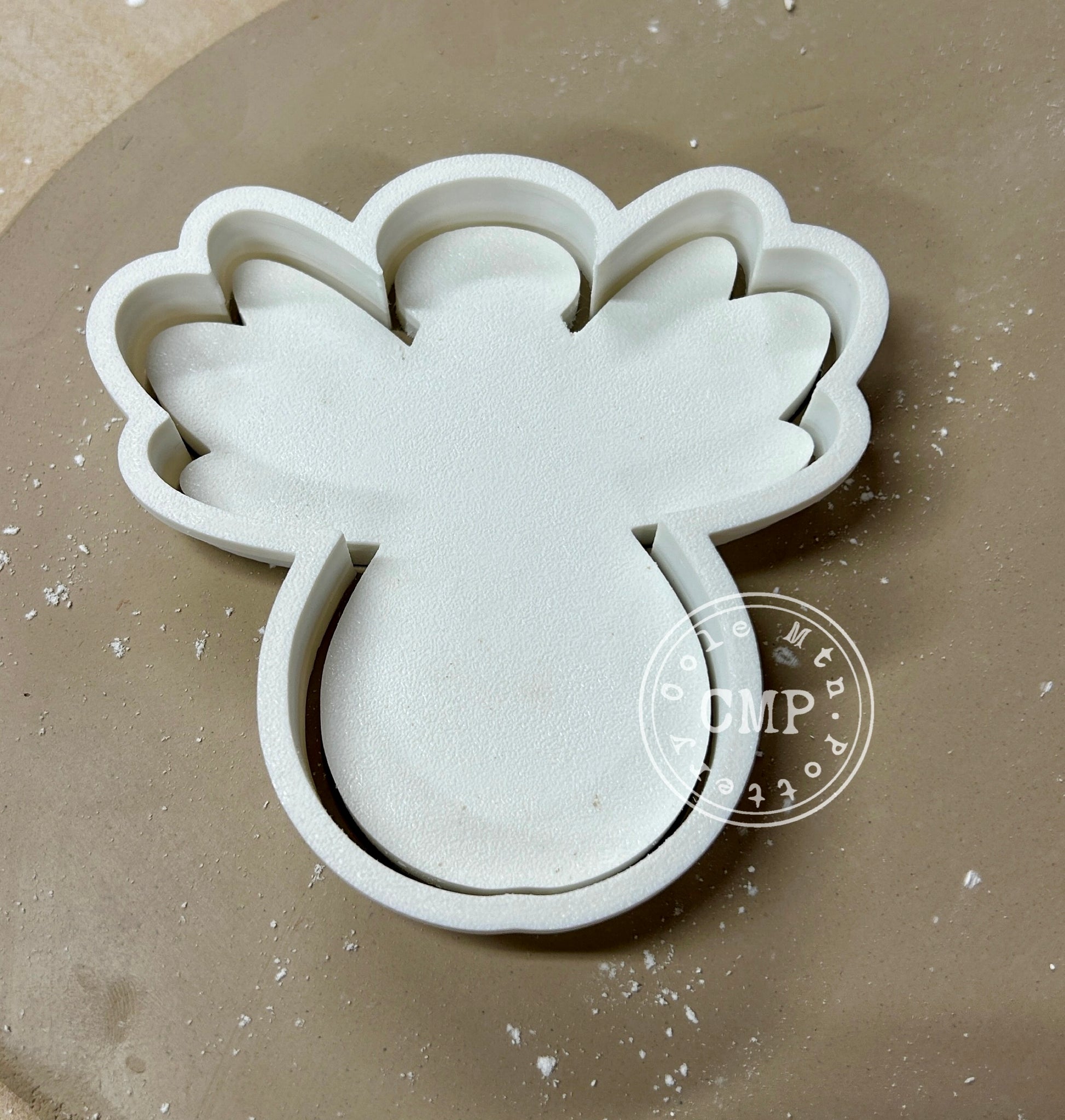 3D printed stamp and cutter combo featuring an angel. Can be used for pottery, baking, crafting, etc.
