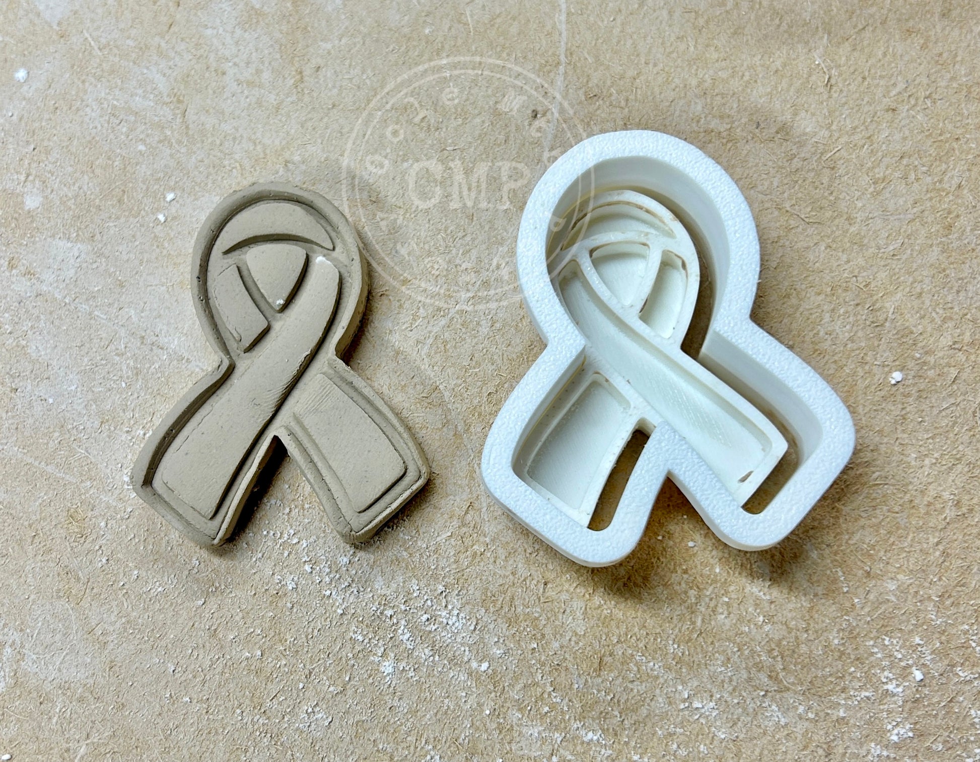 3D printed stamp and cutter combo featuring an awareness ribbon. Can be used for pottery, baking, crafting, etc.