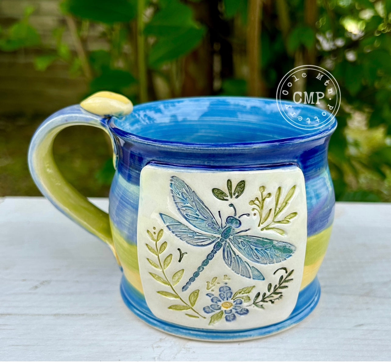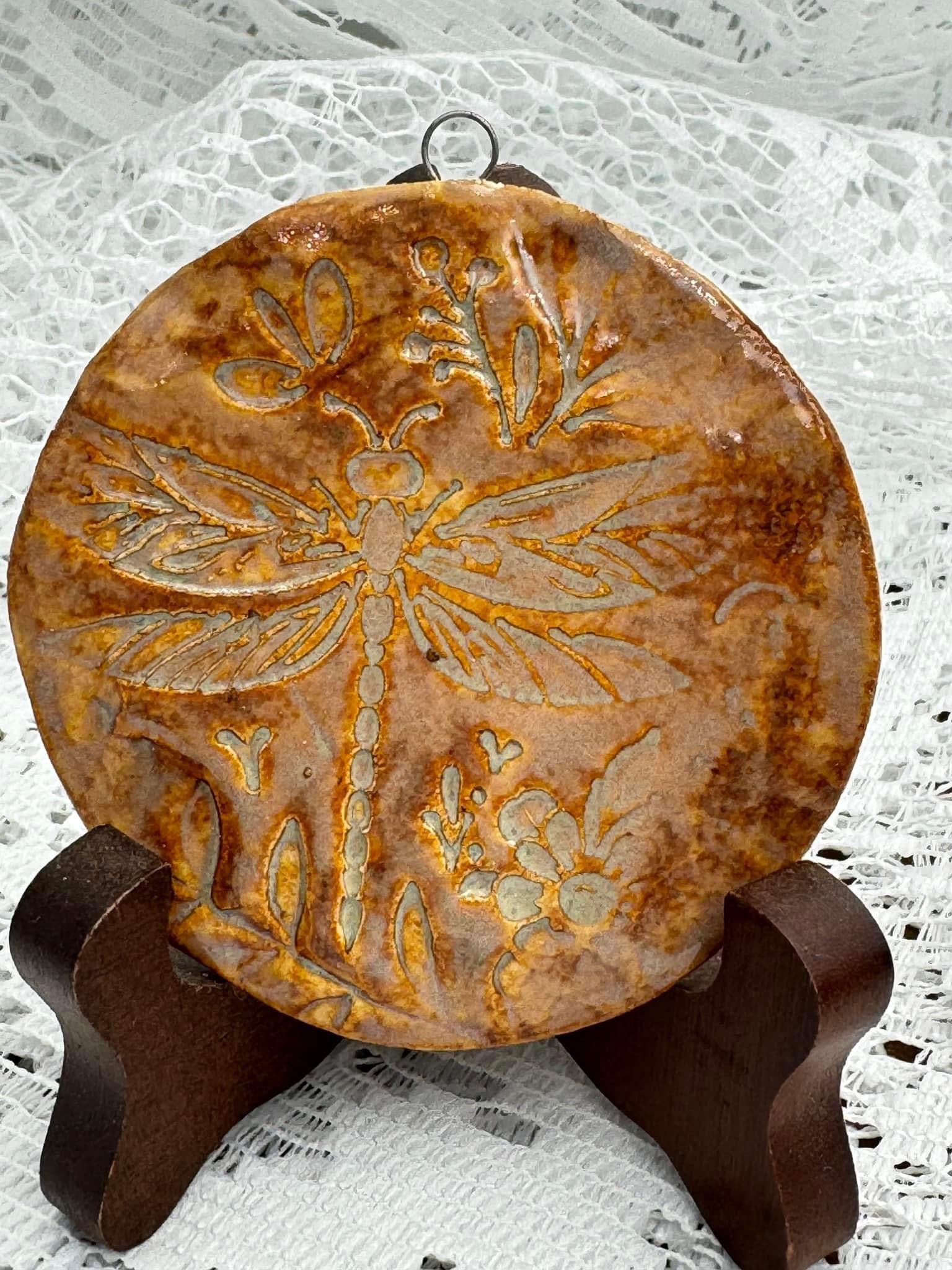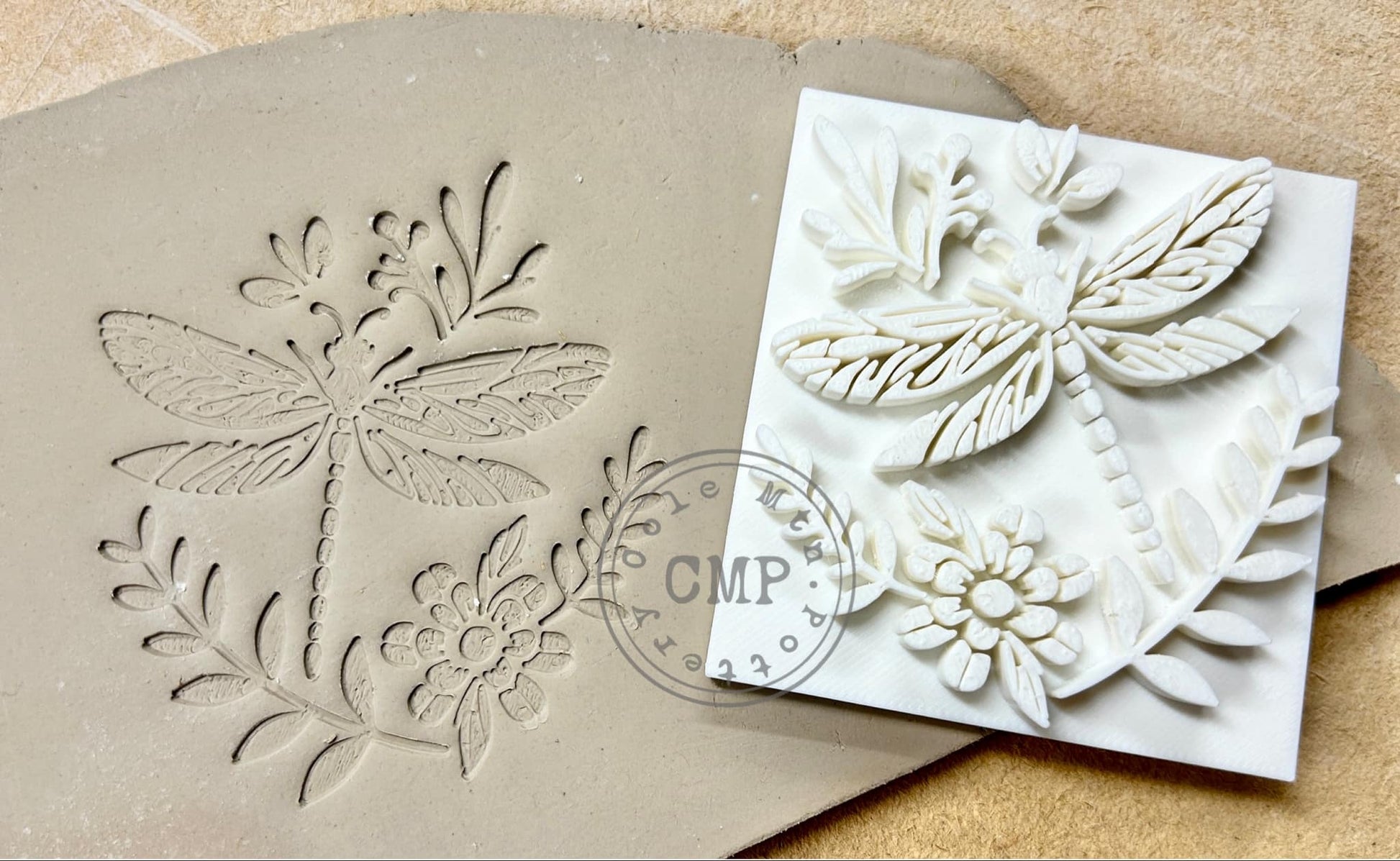 1) Stamp of Dragonfly with flowers - Approx 3" tall x 2.75" wide