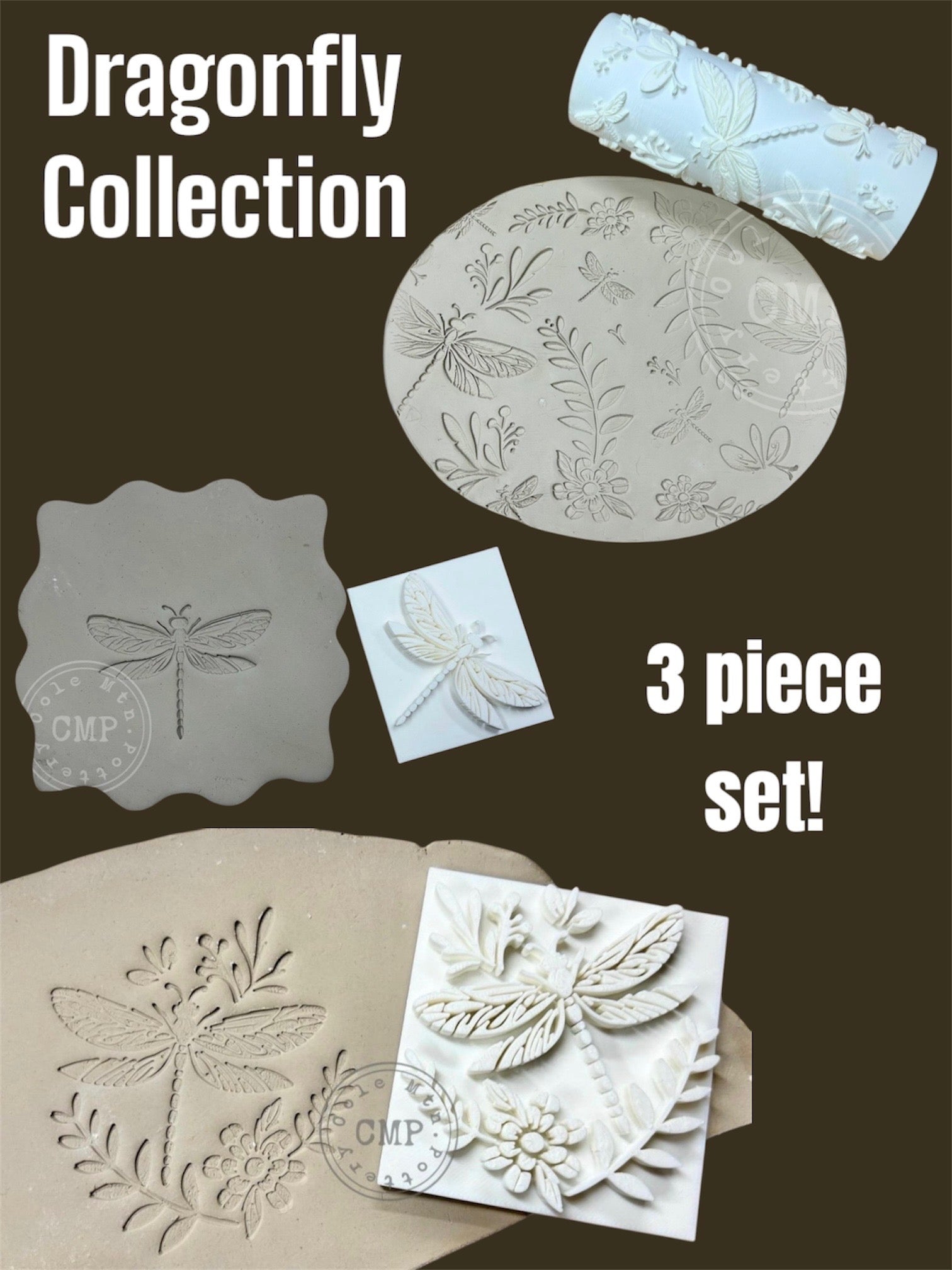 Dragon Fly Collection Roller and Stamp set with 3 pieces included.