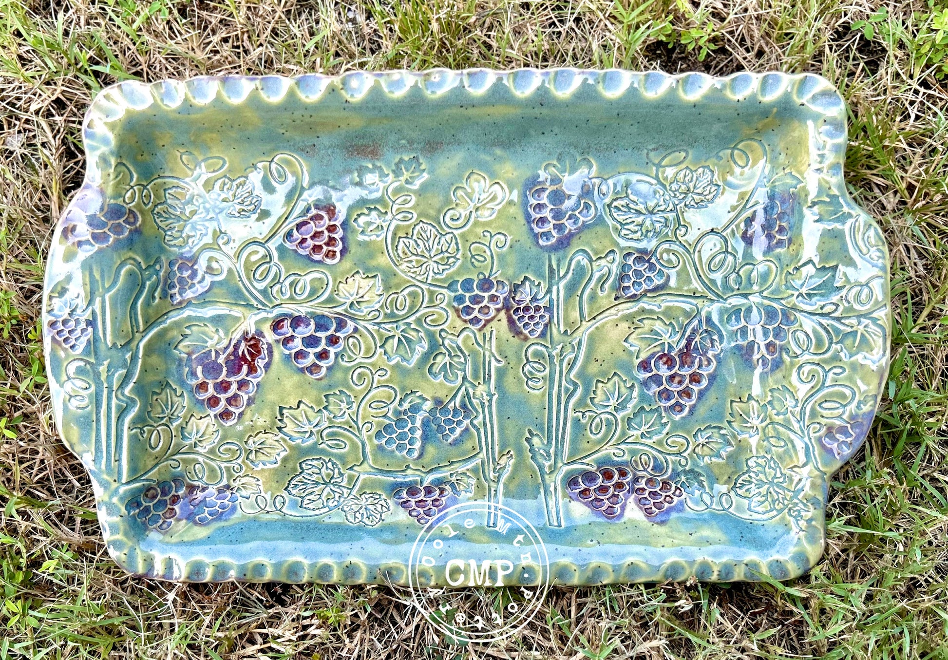 3D printed textured roller featuring various grape vines, leaves. berries, and bunches. Can be used for pottery, baking, crafting, etc.