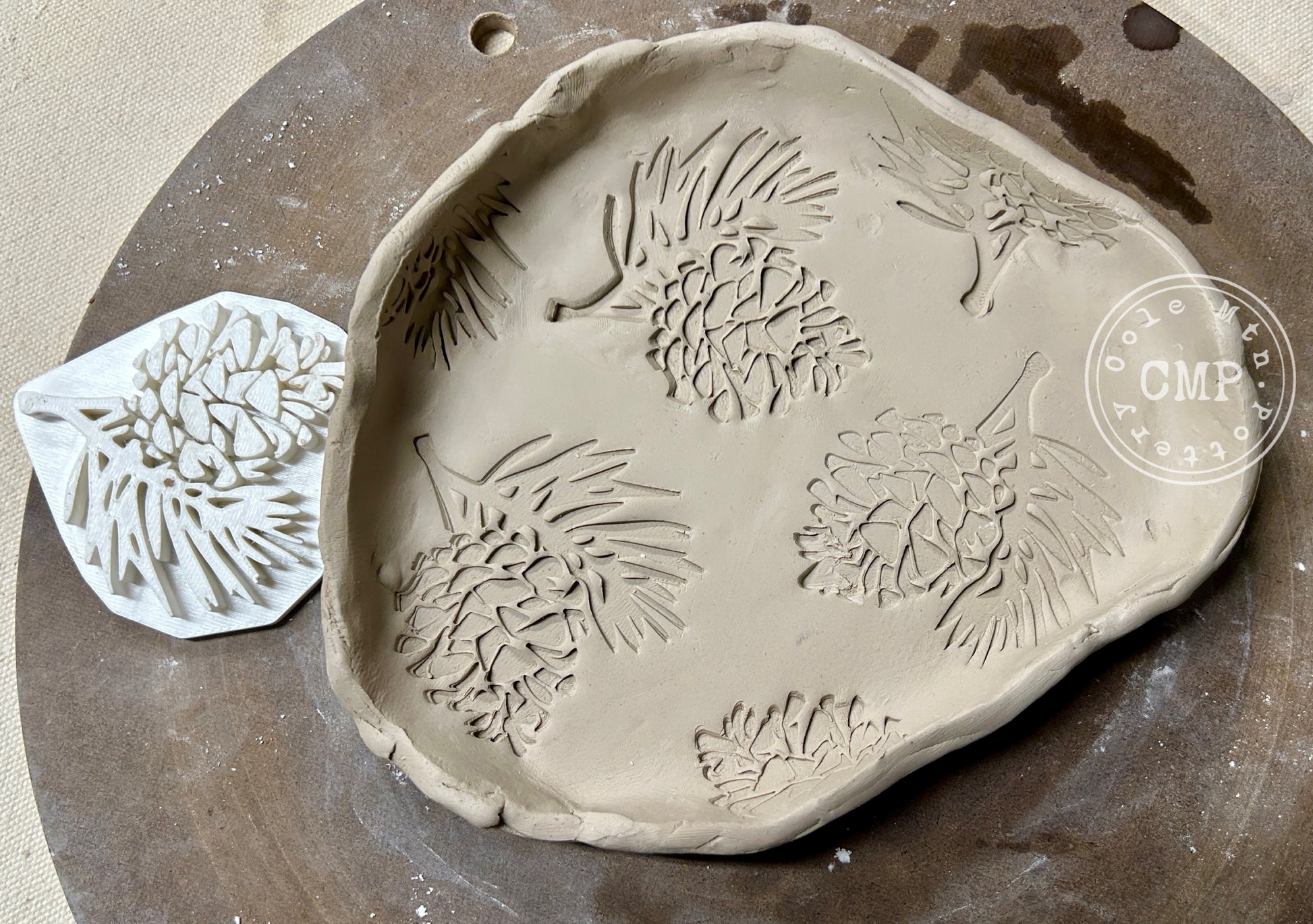3D printed stamp featuring a pinecone. Can be used for pottery, baking, crafting, etc.