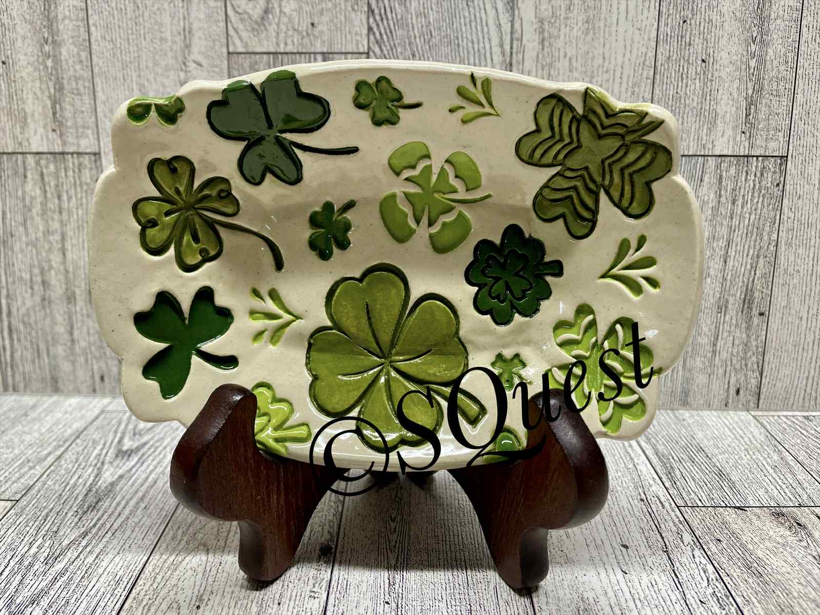 3D printed textured roller featuring various shamrocks and clovers. Can be used for pottery, baking, crafting, etc.