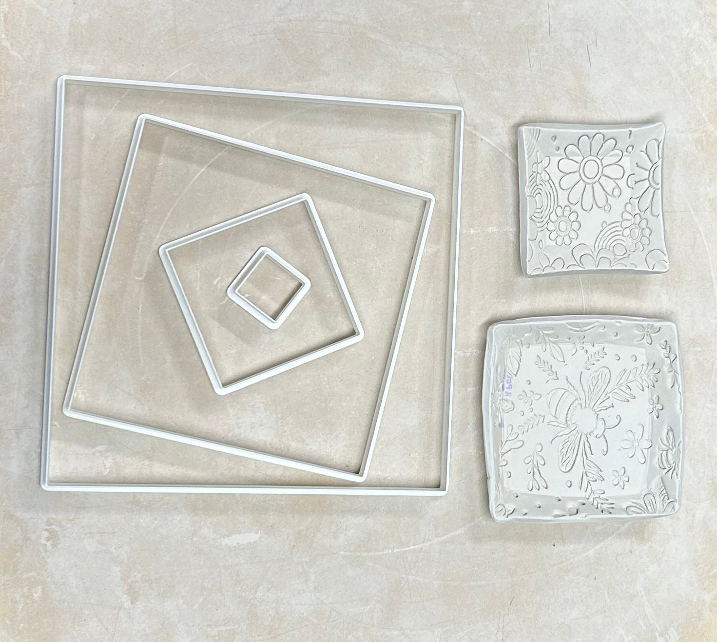 My butterfly and flowers plate bisqued. The detail is great as with all your other rollers. Can’t wait to start glazing it!!