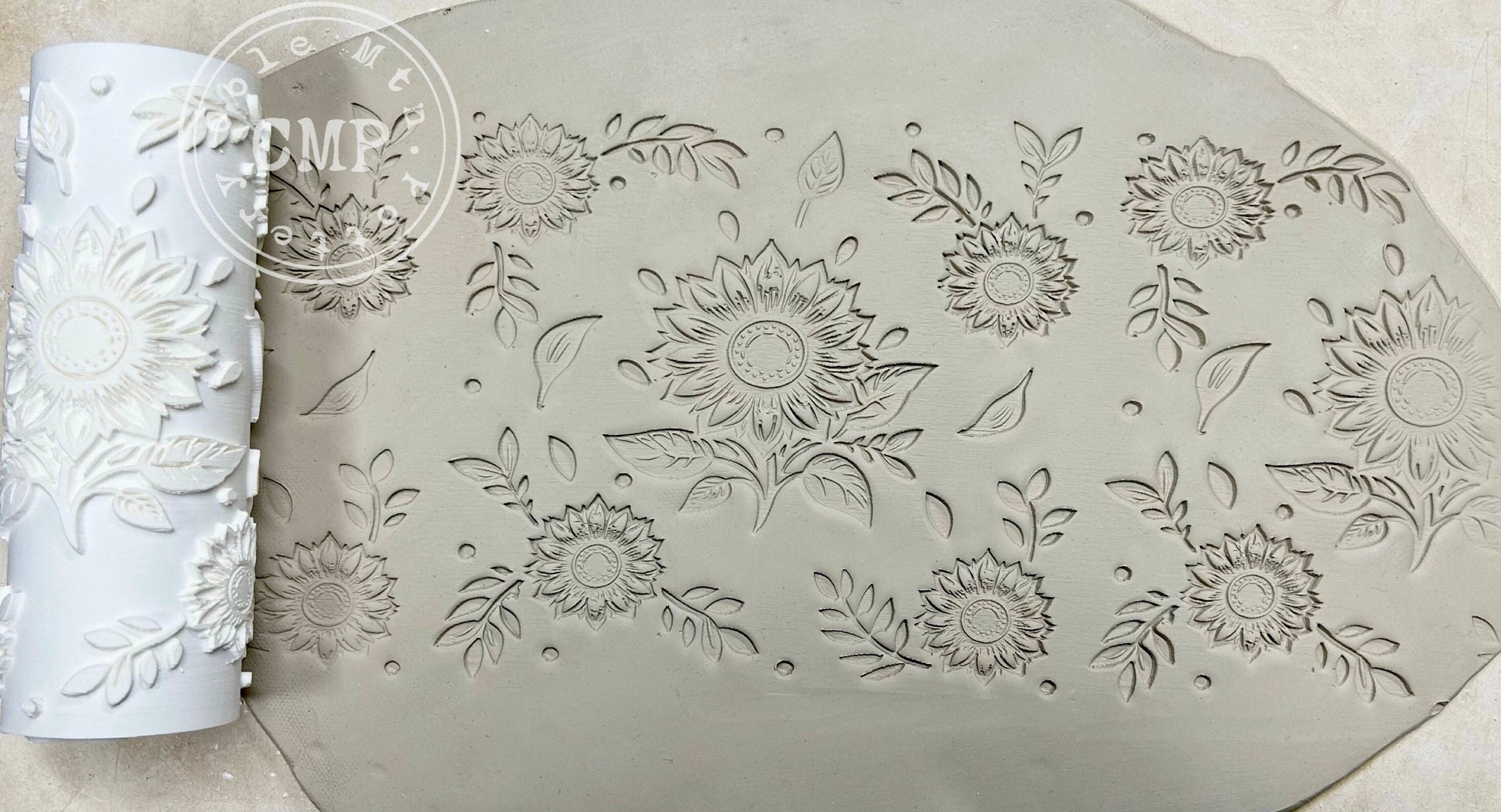 3D printed textured roller featuring Sunflowers with various flowers. Can be used for pottery, baking, crafting, etc.